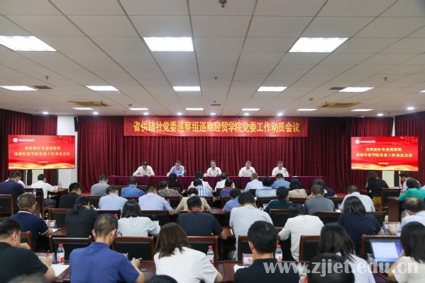省委第五巡视组联络员张剑勇,省社巡察办副主任徐旭,省供销社党委巡察组副组长朱兆武、副组长俞晓东及其他巡察组有关同志,学校领导班子成员出席会议;学校全体中层干部,民主党派和高级知识分子教师代表参加会议。