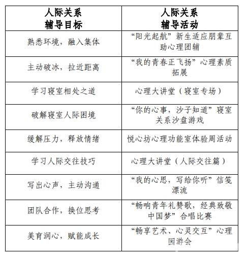 一直以来,学校高度重视学生心理健康教育工作。在学校“让爱为心灵导航”心理育人理念指导下,国际贸易学院以“暖心工作室”二级心理辅导站为依托,通过心理赋能计划将学院“青春赋能 焕发心生”心理健康系列活动和学校“悦纳 悦动 悦生活”心理育人活动结合,为人际关系问题学生制定为其一年的心理赋能专项计划。
